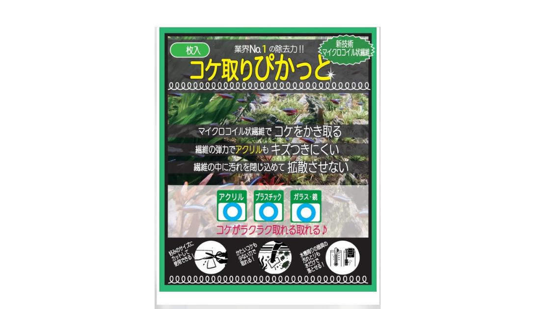 ●新技術のマイクロコイル状繊維による高い吸着能力で水槽内にコケを拡散させません!