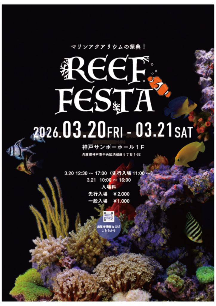 2026年3月20日(金)、21日(土)、兵庫県神戸サンボーホールにて海水魚アクアリウムの祭典『REEF FESTA 2026』が開催されます!